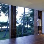 Esteticamente falando, o maior desafio foi o de instalar as réguas em vãos homogêneos e simétricos por dentro e por fora para manter, inclusive, a belíssima vista do horizonte e do mar. No aspecto funcional, esse revestimento proporcionou ao ambiente um aumento significativo de conforto térmico e filtro de luz natural, já que o sol se faz presente em boa parte do dia para embelezar ainda mais essa obra icônica.